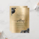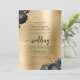 Invitation Black Floral Gold Brushed Metal QR Code Wedding