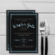 Parfois simple, c'est mieux et si vous avez un gala prévu, cette invitation sera parfaite pour vous. Les tons cool de bleu contre un arrière - plan formel noir donnent une impression hivernale pour la saison et le texte d'information propre associé à une police de script garde l'information claire et lisible. Les lignes sont utilisées comme un cadre simple autour de l'invitation. L'élégance simpliste est le but de ce design.