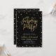 Célébrez votre jour spécial avec ce modèle d'invitation de fête surprise moderne élégant. Ce design présente des confettis texturés dorés chic et une calligraphie sur fond noir.
