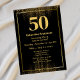 Célébrez le grand jalon en style avec cette élégante Invitation Surprise 50th Birthday. Doté du numéro "50" en caractères serif dorés gras contre un arrière - plan noir frappant, encadré par une bordure dorée et des accents de parties scintillant brillants en haut et en bas, ce design donne le ton pour une soirée inoubliable. La citation "shhh... keep it a secret" ajoute une touche ludique, tandis que la police serif propre assure que tous les détails du parti (nom, date, adresse et RSVP) sont faciles à lire et à customiser. L'arrière est d'une couleur dorée, ce qui donne à l'invitation une finition sophistiquée. Parfait pour les organisateurs de famille ou d'entreprise qui veulent créer un air de mystère et de glamour.