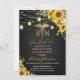 Célébrez ce moment spécial en style avec un Invitation de Graduation Party! Le design moderne avec des tournesols, des cordes de lumières brillantes au-dessus d'un arrière - plan de tableau noir, ainsi que le texte de la calligraphie d'or feront de cette fête un souvenir. Partie d'une collection. Éléments correspondants disponibles.