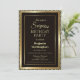Une invitation à la fête de 18ème anniversaire surprise moderne avec une bordure en or dans un cadre en or embelli en diagonale rayé sur un arrière - plan noir.