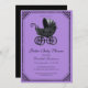 Elegant Gothic Baby Shower Invitation. Our Gothic Baby Shower Invitation features a beautiful black ornate gothic-style stroller set against a purple background, all enclosed within an elegant frame Personalize with your details.