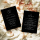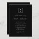 Invitation Black Modern Script Monogram Crest Détails du Mari