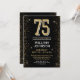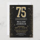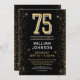 Cette fabuleuse invitation de 75e anniversaire pour hommes noirs et or portant le numéro 75 en or avec des polices modernes et des côtés parties scintillant or serait parfaite pour demander aux gens de se joindre à vous pour célébrer l'homme dans votre vie 75e anniversaire. Traditionnel et classique, il est frais, moderne et contemporain. Pour voir vos invitations uniques, sélectionnez "Personnaliser ce modèle" et entrez vos informations. C'est super facile !