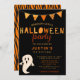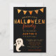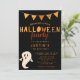 Joli noir et orange avec l'adorable illustration fantôme Halloween Party pour l'invitation d'anniversaire des enfants.