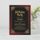 Invitation de fête d'anniversaire Black surprise avec un cadre doré orné avec une bordure extérieure à l'ombre rouge pour compléter le design créant une invitation dynamique pour votre occasion spéciale.