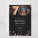 Une invitation photo moderne et design pour une fête de 70e anniversaire. Un arrière - plan noir classique, décoré d'étoiles dorées roses. Personnalisez et ajoutez les détails de votre fête.