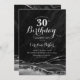 Gate noir et argent 30e anniversaire invitation de fête. Design élégant et moderne avec aquarelle agate marbre arrière - plan, faux parties scintillant argent et typographie script. Carte invitation branchée parfaite pour une célébration anniversaire féminine élégante. Invitations Zazzle imprimées ou téléchargement instantané modèle imprimable numérique.