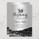 Gate noir et argent 30e anniversaire invitation de fête. Design élégant et moderne avec arrière - plan de géométrie en marbre de pierre de pierre, faux parties scintillant argent et typographie script. Carte invitation branchée parfaite pour une célébration anniversaire féminine élégante. Invitations Zazzle imprimées ou téléchargement instantané modèle imprimable numérique.