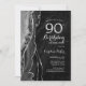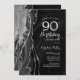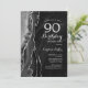 Gate noir et argent 90e anniversaire invitation de fête. Design élégant et moderne avec aquarelle agate marbre arrière - plan, faux parties scintillant argent et typographie script. Carte invitation branchée parfaite pour une célébration anniversaire féminine élégante. Invitations Zazzle imprimées ou téléchargement instantané modèle imprimable numérique.