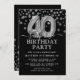 Invitation Black & Silver moderne 40e fête d'anniversaire sur