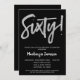 Invitation Black Silver Script 60e anniversaire de fête Invit