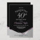 Cette invitation à la fête du 40e anniversaire, qui est moderne, en noir et argent, est décorée de couleurs noir et argent, séparées par une vague fluide et un ruban rose élégant qui coule d'un côté à l'autre. La zone de texte personnalisable vous permet d'inclure sans effort tous les détails nécessaires à la célébration de votre anniversaire spécial, y compris la date, l'heure, le lieu et les informations RSVP. Que vous planifiez un rassemblement ou une grande aventure pour votre invité d'honneur, cette invitation contemporaine vous impressionnera.