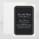 Annonce de mariage 'Simply Elegant' moderne et chic avec un design d'emblème de billet noir élégant. Ce design classique et stylé est facile à personnaliser avec vos détails de mariage. Pour plus d'options de personnalisation, cliquez sur Personnaliser.