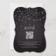 Elégant Black String Lights QR Code Mariage Festif Gradient Damask Arrière - plan avec de belles String Lights. Idéal pour ces mariages d'hiver pétillants ! La couleur et le type de police peuvent être modifiés via le menu d'édition. Ajoutez votre code QR au dos pour la commodité de vos invités à RSVP et voyez tous les détails sur votre site Web. Il vous suffit de modifier l'exemple d'URL du modèle en votre nom propre et votre code QR sera généré automatiquement.