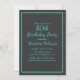 Celebrate an extraordinary milestone with this elegant 80th birthday party invitation, featuring a deep charcoal background paired with vibrant aqua typography for a timeless yet striking look. A refined double-line border frames the design, while graceful script lettering balanced with clean serif text creates a sophisticated and polished style. Perfect for honoring a woman’s 80th birthday, this invitation is ideal for elegant evening gatherings, cocktail parties, or meaningful family celebrations at home. The high-contrast color palette ensures excellent readability while clearly presenting the honoree’s name, event details, and RSVP information.