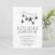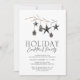 Invitation vos amis ou collègues pour fêter la saison des Fêtes avec cette simple invitation moderne à votre cocktail de vacances. Le design se compose d'une branche unique avec des ornements étoilés suspendus et des ornements en pin dans les tons noir sur un arrière - plan blanc. Personnalisez avec les détails de votre événement, y compris la date, l'heure, l'emplacement et les informations RSVP.
