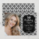 Elégante invitation féminine 50ème anniversaire avec votre photo. Design blanc noir glam avec faux parties scintillant argent. Comprend un motif damassé noir et blanc, une police de script et des confettis. Parfait pour une fête anniversaire adulte élégante. Personnalisez avec vos propres détails. Peut être customisé pour n'importe quel âge ! Invitations Zazzle imprimées ou téléchargement instantané modèle imprimable numérique.