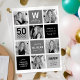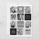 Invitations contemporaines à la fête du 50e anniversaire avec un collage photo moderne, des carrés noirs et gris élégant, et un modèle texte élégant que vous pouvez personnaliser avec vos propres informations de célébration.