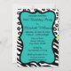 Customisez cette invitation sophistiquée pour une fête de 30e anniversaire ou un autre événement. Le design est composé de rayures zébrées en noir et blanc et de peaux de léopard (guépard) associées à un design moderne. Un emblème bleu turquoise turquoise, surligné de noir, se trouve sur un bar vert citron et crée une zone de personnalisation, avec le nom et l'événement qui sont faciles à customiser. Le verso de l'invitation comprend des champs pour toutes vos informations pour une fête de 30e anniversaire ou un autre événement. Vous pouvez facilement modifier et supprimer des champs si nécessaire. Les couleurs sont le blanc, le noir, le turquoise et le vert citron. Le léopard sauvage et les peaux zébrées pour le design graphique est l'une des tendances artistiques et design les plus chaudes, et est extrêmement et populaire. Coordonner avec d'autres produits pour une soirée élégante.