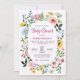 Blanc avec des fleurs vertes et colorées bordent l'invitation baby shower peut être facilement personnalisée à vos besoins.