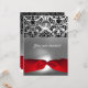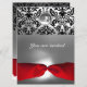 INVITATION BLANC NOIR ROUGE RUBAN DAMAS PIERRE FINES INITIALE