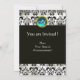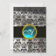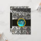 INVITATION BLANC NOIR SOIE DAMAS TEAL BLEU GEM MONOGRAMME