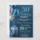 Un ballon bleu élégant et une invitation à la conception de cadeaux pour une fête de 30e anniversaire. Comprend des ballons bleus et argentés avec du texte bleu et blanc. Tout le texte peut être modifié au besoin pour répondre aux exigences de votre partie. Un grand invitation pour tout âge et événement.