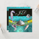 INVITATION BLEU AQUAMARINE DAMAS PLAGE MARIAGE MONOGRAMME