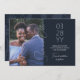 Mariage bleu ardoise enregistrer la carte de date est polyvalent pour les couleurs mariages gris bleuâtre. Élégant script de calligraphie est belle superposée avec votre photo. Modifiez facilement les informations du mariage pour enregistrer la carte de date. Le texte bloc est parfait pour un look simple et minimaliste.