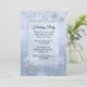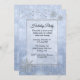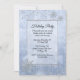 Élégante invitation à la fête de Noël faite dans un bleu clair avec une finition satinée. Des graphiques de parties scintillant couleur argent et de flocons de neige décorent à l'extérieur de la zone de texte. Personnalisez tous les champs de texte de votre fête de vacances.