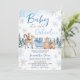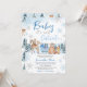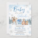 Célébrez l'arrivée de votre petit garçon avec notre invitation à Baby shower Blue Winter Woodland ! Avec ses délicates flocons de neige, ses pins majestueux et ses adorables animaux boisés, cette invitation à thème hivernal crée un merveilleux pays boisé, parfait pour un baby shower de garçon. BBS560