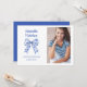 Bleu et blanc faire-part de graduation / invitation de fête personnalisée avec une photo du diplômé. Parfait pour les diplômés du secondaire ou de l'université. Contactez-moi pour obtenir de l'aide sur vos personnalisations ou pour demander une correspondance ou une coordination supplémentaire des produits Zazzle pour célébrer votre diplômé.