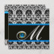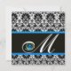 Invitation BLEU BLANC DAMASSÉ MONOGRAMME Saphir