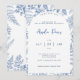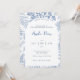 Invitation Bleu Blanc Moderne Classique Floral Baby Boy Douch