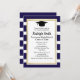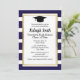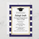 Bleu et blanc horizontalement rayé, style nautique invitation à la fête de graduation avec un capuchon de graduation noir.