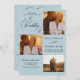 Chic et élégant bleu clair et blanc tout en un faire-part de mariage de calligraphie, ajoutez 3 de vos photos préférées avec rsvp, hébergement, détails, et plus d'infos. Avec un magnifique script de calligraphie de brosse.