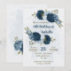Belle invitation romantique fête d'anniversaire avec des fleurs bleu marine et bleu clair poussiéreux et quelques beaux feuilles. POUR PLUS DE PRODUITS CORRESPONDANTS cliquez sur la collection ci-dessus ou contactez-moi