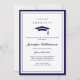 Célébrez en style avec notre invitation intemporelle à la fête de graduation bleu marine et blanc, avec des cadres bleus et arrière - plan blanc, élégant nom et date scénarisé, et casquette bleue de graduation. Parfait pour marquer cette étape importante, cette invitation promet de donner le ton à une soirée sophistiquée et mémorable. Ajoutez une touche personnelle en téléchargeant votre photo au verso de l'invitation.