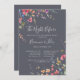 Cette soirée classique bleue sauvage avant le dîner de répétition est parfaite pour un événement moderne. Le design présente des fleurs sauvages jaunes, violettes et blanches avec du feuillage dans un arrière - plan rose et vert aquarelle.