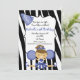 Deux, quatre, six, huit. Come célèbrent avec cette invitation mignonne d'anniversaire de pom-pom girl. Il est placé sur un arrière - plan noir et blanc d'impression de zèbre. Le long du centre inférieur est un pom-pom girl d'une chevelure blond portant un uniforme bleu sautant dans le ciel faisant un contact d'orteil. Elle a des rubans dans ses cheveux. Il y a une grande étiquette blanche au centre où ; vous personnalisez l'invitation avec votre information de partie. En haut à gauche le coin est un mégaphone dans la lumière et les roses indien avec le mot "acclamation" là-dessus. Vérifiez les nombreuses autres conceptions et couleurs dans notre magasin. illustrations de ©JW