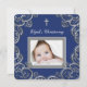 Elégant garçon photo gris et bleu marine invitation à baptiser. Cette belle invitation à baptiser gris et bleu marine est facilement customisée pour votre événement en ajoutant vos photos et détails de l'événement, le style de police, la taille et la couleur de police et le libellé.