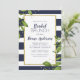Une invitation audacieuse et élégante au brunch de mariée avec des rayures bleues et blanches bordées de verdure luxuriante et de confettis de parties scintillant. La couleur Arrière - plan peut être modifiée pour correspondre à votre jeu de couleurs. Il suffit de changer la couleur du arrière - plan à l'avant et à l'arrière de l'invitation.