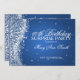Soixantième conception élégante d'invitation de fête d'anniversaire de surprise avec le motif bleu de scintillement sophistiqué de vague, le nom et la date faite sur commande et le texte supplémentaire. Impressionnez votre famille et amis avec cette conception élégante et chique de faire-part d'anniversaire. Entièrement personnalisable ! Facile à utiliser et facile à personnaliser.