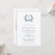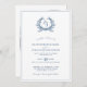 Un élégant, formel, classique crête botanique et faire-part de mariage monogramme en bleu azur. Le verso de la carte contient un code QR pour plus de détails sur votre site.