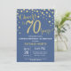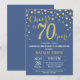 Surprise 70e anniversaire Invitation avec Parties scintillant bleue et or Arrière - plan diamant. Confetti d'or. Anniversaire adulte. Hommes ou Femmes Anniversaire. Pour plus de personnalisation, cliquez sur le bouton "Customiser" et utilisez notre outil de conception pour modifier ce modèle.