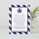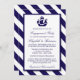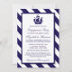 Ces invitations sont parfaites pour toute future mariée qui planifie une fête de fiançailles romantiques ou une douche au bord de la mer. Le design est orné d'un motif blanc marine bleu navire sur une marine nautique et un arrière - plan rayé blanc. Le simple modèle peut être personnalisé pour convenir à votre événement spécial et ferait le faire-part parfait pour toute soirée nautique, y compris : douches nuptiales, fiançailles, mariages, anniversaires et bien plus encore.