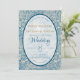 Le texte est écrit dans un ovale transparent blanc, avec des lettres bleues, sauf les noms, qui sont dorés. Le mot Mariage est écrit dans une écriture calligraphique ; le reste est en majuscules.