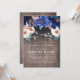 Invitations de remise de diplômes florales rustiques avec lumières à cordes et bouquet de fleurs bleu marine et royal